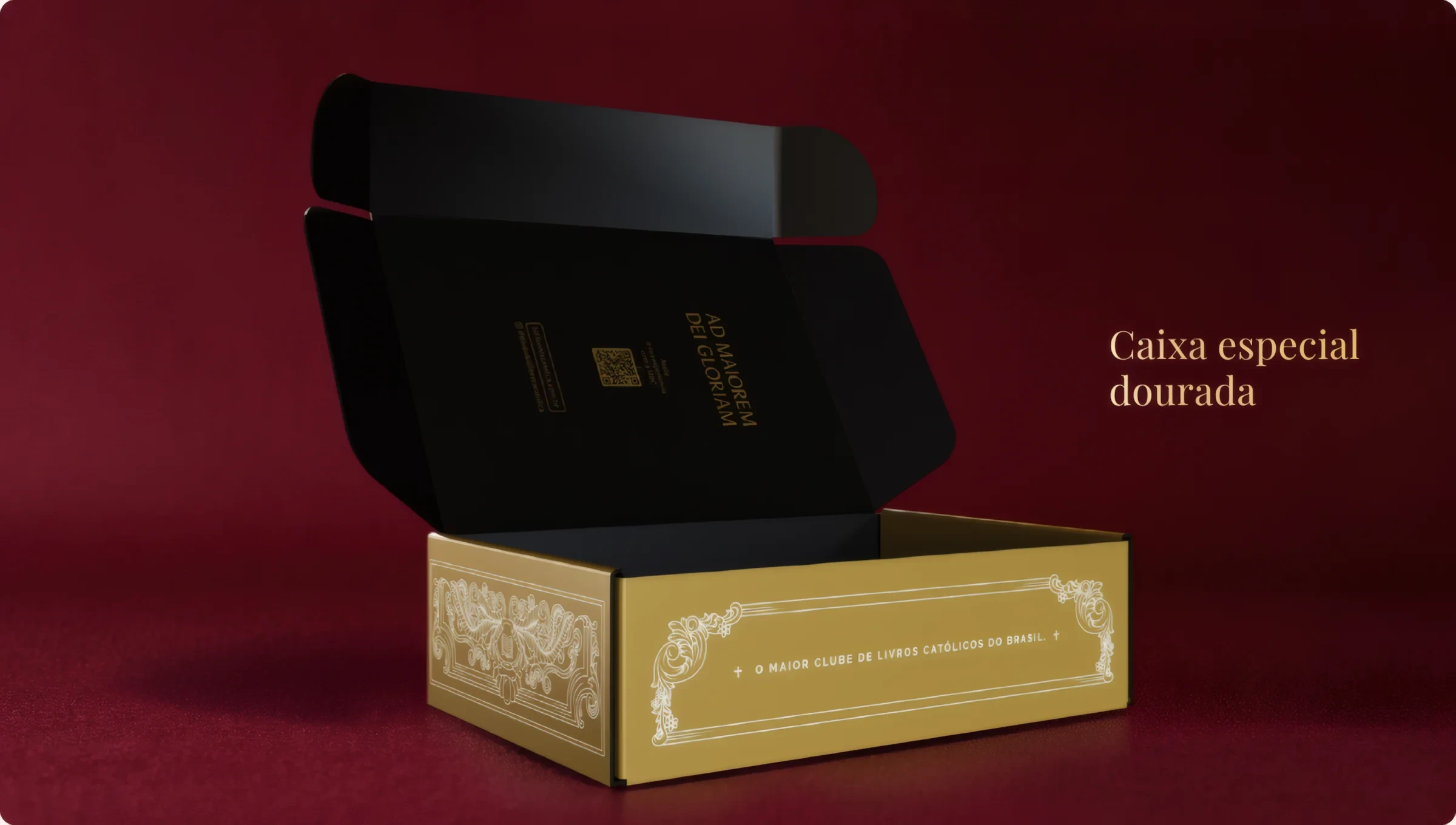Todos os meses, os membros do clube recebem em suas casas um box exclusivo com uma grande obra da fé católica, um brinde relacionado à leitura do mês, um marca-páginas personalizado e um ícone devocional.